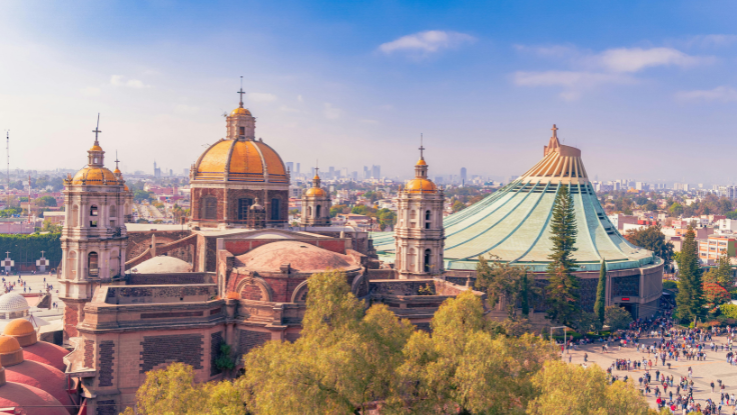Traslado hacía la nueva Basílica de Guadalupe, en donde por espacio de 45 minutos se visitará en su interior el atrio o Plaza de las Américas, así como su interior de la misma Basílica, sin dejar de pasar por el frente de laimagen religiosa más venerada de México, patrona del Continente Americano, y que da origen a múltiples manifestaciones de fervor religioso por parte de los creyentes.